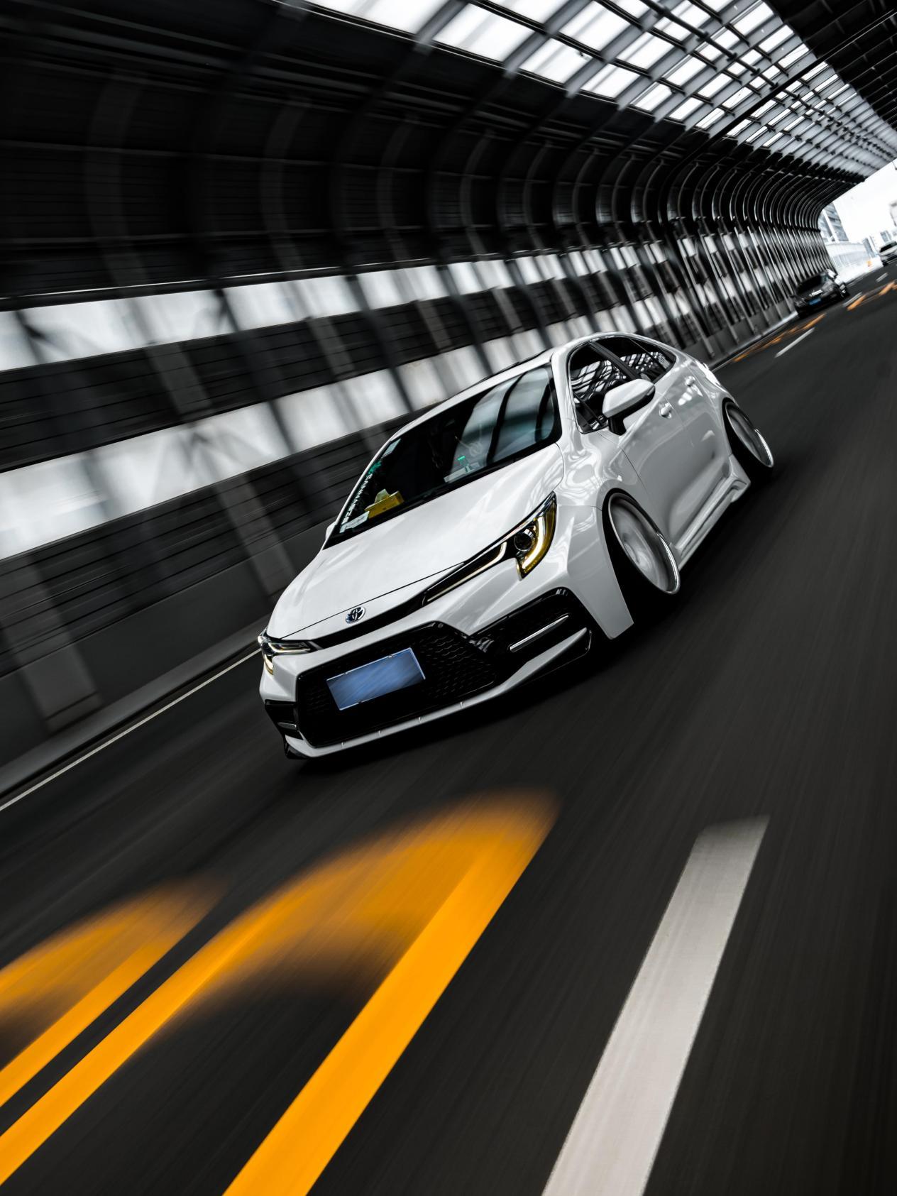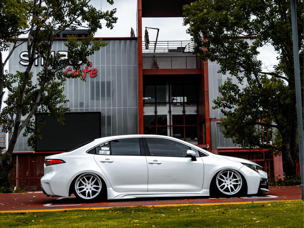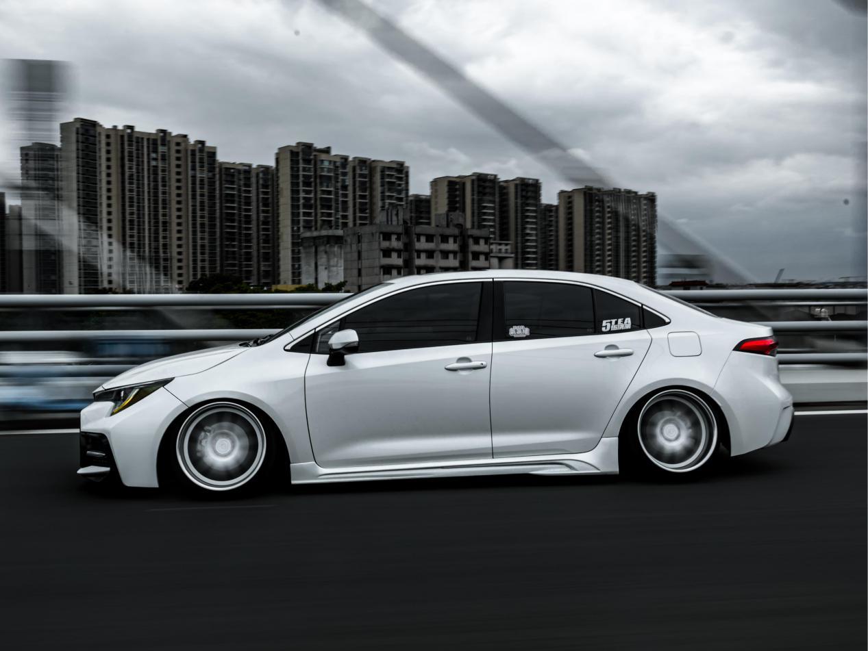 最让车主开心的,其实是改装后的雷凌带来的“反差感”,原本停在小区里没人注意的代步车,如今每次出门都能引来路人的目光。液态金属白的改色膜在阳光下泛着流动的光泽,Work CR 2P轮毂的双片设计透着精致,低趴的姿态像蓄势待发的“小野兽”。