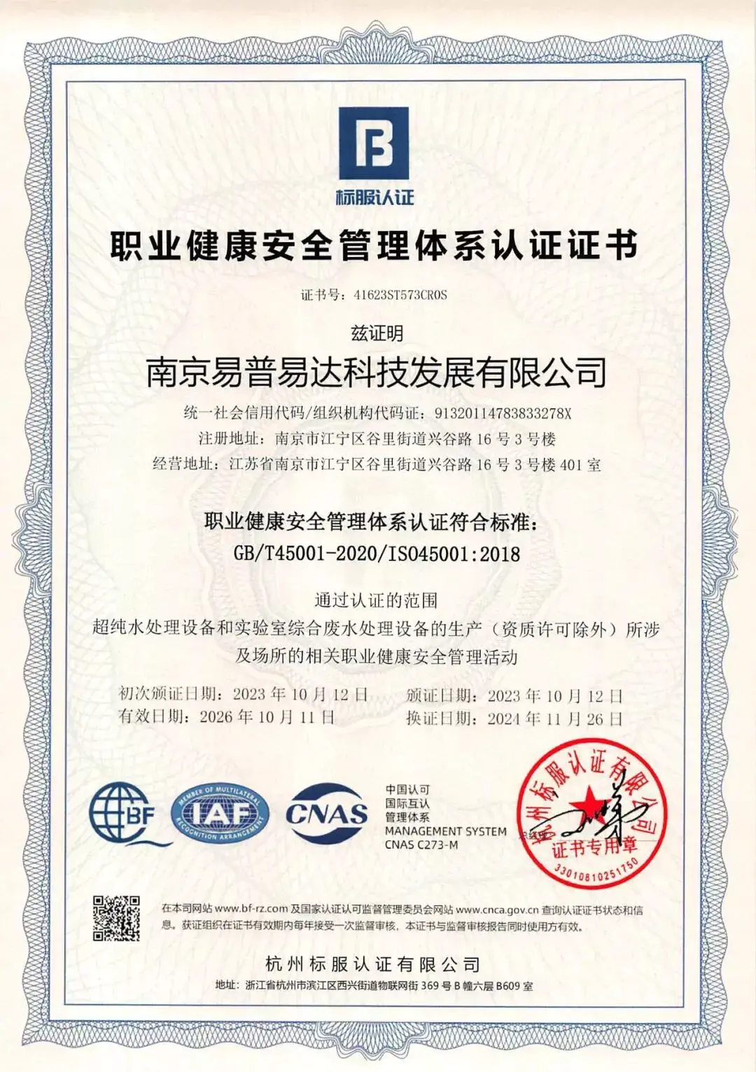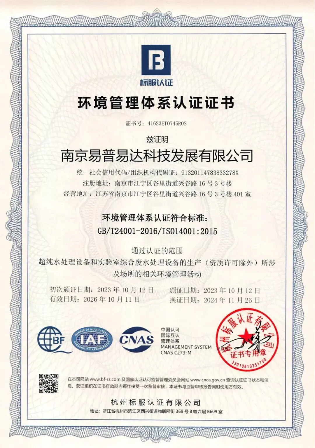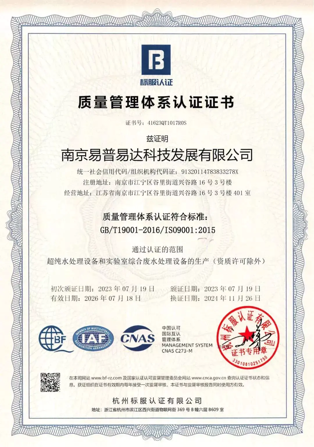 南京易普易达科技发展有限公司自2006年成立以来,便深耕于产品研发、产品物联及制造业数字化领域,致力于为智能实验室纯水、医疗纯水以及电子半导体等生产领域提供卓越的纯水解决方案。