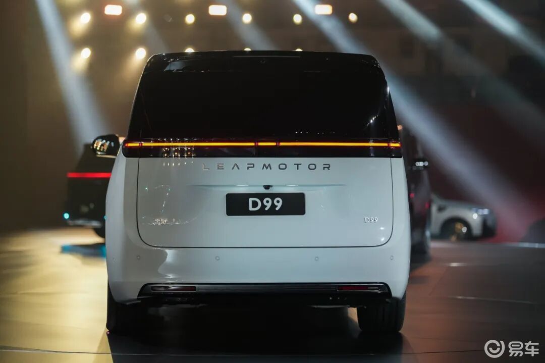 零跑D99基于LEAP 4.0技术架构打造,外观上,新车采用与零跑D19相似的家族式设计语言,车头部分,并且前脸使用了三段式日行灯+分体式大灯设计,灯带下方设计有贯穿式的哑光银饰板,前灯组采用百万像素DLP投影大灯。前包围底部中央设计有AGS主动进气格栅功能。搭配标志性的饼形轮圈,巨幕天窗加持,车身尺寸方面,车长超5200mm、车宽近2000mm,轴距超3100mm。