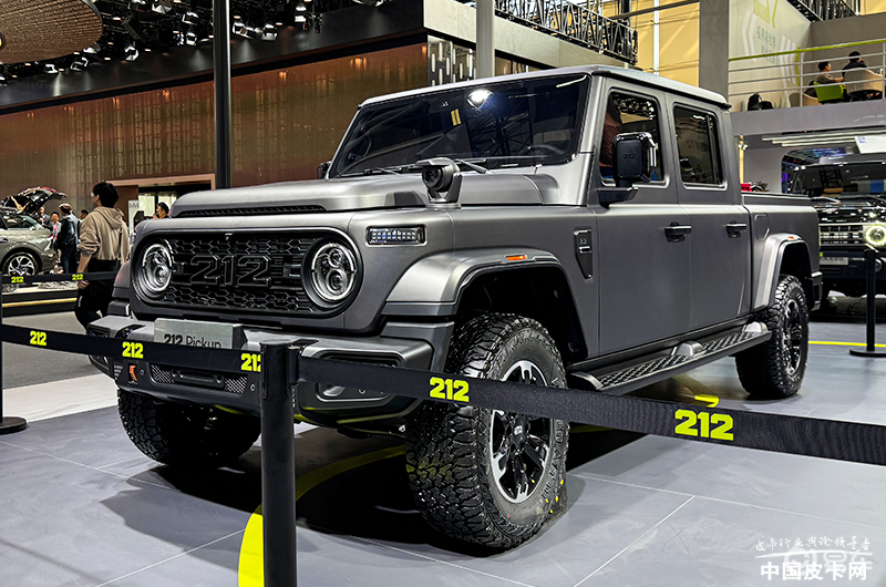 根据此前曝光的申报图来看,探境者01的设计,延续212家族标志性的硬派复古风格,同时针对皮卡定位进行专属优化,既唤醒越野情怀,又兼顾实用美学。新车前脸保留蚌式机盖、圆形复古大灯与大尺寸镂空进气格栅,中央醒目的“212”品牌标识,瞬间奠定硬核基调。粗壮的黑色前保险杠与外扩式轮眉相得益彰,原厂自带“改装范儿”,无需额外加装即可气场拉满。