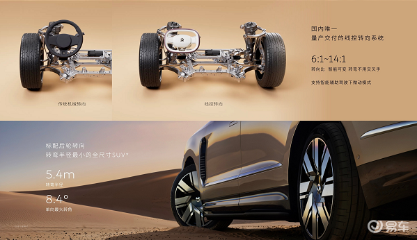 全主动悬架每秒能上千次调节车身姿态,过弯、过减速带时能有效抑制侧倾和颠簸,就算在冰雪、坑洼路面,车身也能保持平稳。再加上最大 8.3° 的后轮转向,这台车长超 5.3 米的 SUV,转弯半径只有 5.4 米,灵活性堪比紧凑型轿车,彻底解决了大型 SUV 不好开、不好停的问题。