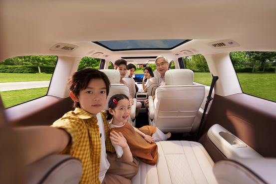 市面上很多六座SUV有个通病,第三排像小板凳,成年人坐进去膝盖顶前座、头顶天花板,长途基本没法用。星光L这次显然想打破这个局面,2950mm轴距、90%得房率,车内有效面积5.8㎡做到了同级最大,1.75米成年人能轻松坐进第三排。二三排纯平地板配合190mm的二排过道宽度,进出不再靠“钻”。后排门洞高度做到1.13米,面积0.93㎡,老人上下车不用弯腰低头。1.24米的车内层高让孩子能站立走动,二排座椅拉到最后还能腾出0.68㎡的儿童活动区,星光L是真把家庭用车场景吃透了。