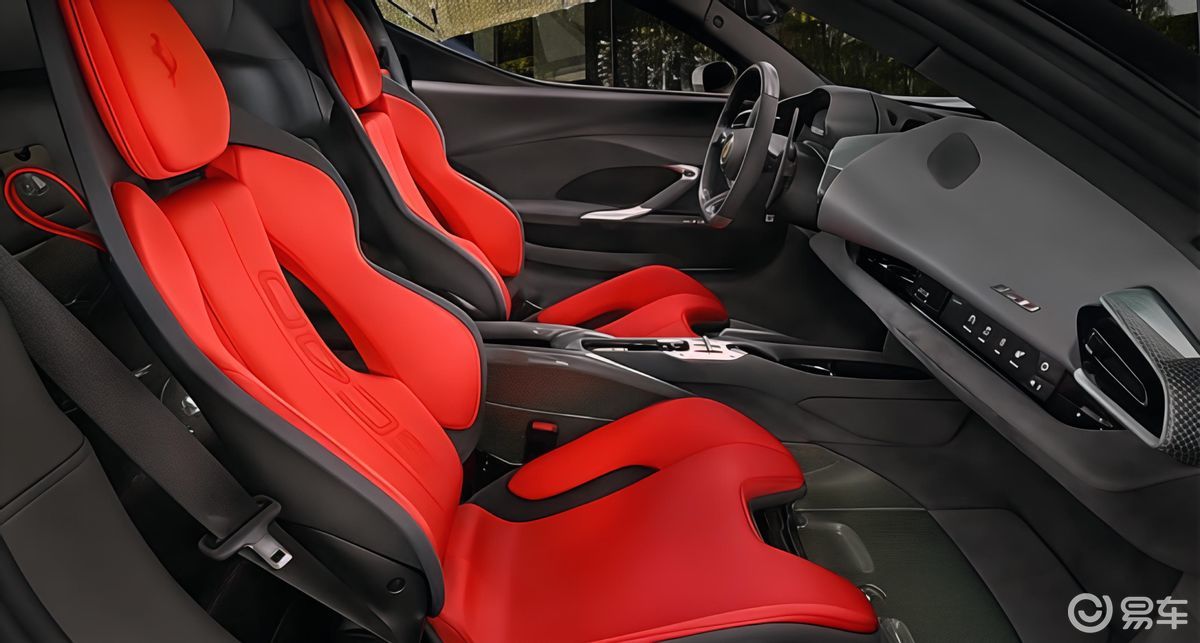 内饰方面,SC40在脚踏区域、座椅后方及部分地垫表面应用了碳纤维-凯芙拉复合材料;座椅采用炭灰色Alcantara面料和红色提花高科技织物包裹,靠背上带有编织SC40标识,头枕上饰有跃马徽标。