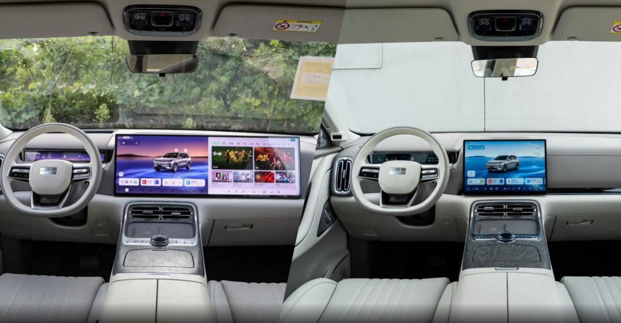 在配置方面,银河M9表现有些差强人意,几乎你能说得出的 M9 亮点配置都集中在高配车型上,例如在座椅的材质上,除了顶配车型,其他版本均采用仿皮材质。在座椅功能上,低配车型除了基础的前排座椅通风、加热外,像二排、三排的座椅特色功能均未配备,更不要提冰箱、彩电、小桌板这些豪华、舒适配置,在低配车型上也都不出意料的缺了席,而且更难以让人接受的是银河M9的大屏,在高配车型为30寸6K屏,但在低配车型上,不仅屏幕尺寸缩水到了15.4英寸,并且分辨率也降低到了3K,区别意味十分明显。