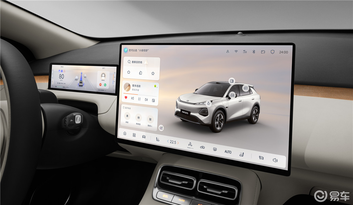 全新Q05的内饰提供玉石白、墨玉黑两种配色方案,仪表台、门板、副仪表等区域均采用软质材料包覆,用料非常扎实。在智能化方面,新车搭载15.6英寸2.5K中控屏+10.17英寸全液晶仪表,配置4纳米车规级MT8676座舱芯片,拥有24GB超大内存,支持5G网络和端侧AI大模型。车机系统深度融合AI大模型,支持连续对话、可见即可说、免唤醒操作等智能交互体验。其中,激光雷达版接入豆包深度学习AI,普通版则融合DeepSeek与通义千问双模型。同时,系统还支持华为HiCar、Carlink、CarPlay。