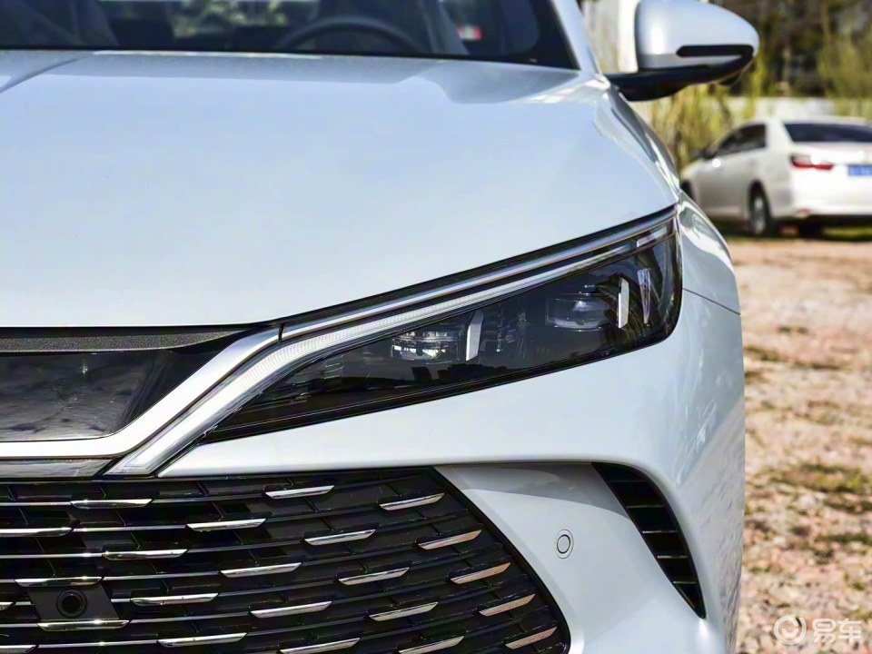 首先从外观颜值上看,26款 秦L 的整体基本延续了家族式的设计语言,尤其是前脸,经典的龙颜设计元素,大嘴式进气格栅几乎占据了整个前脸的五分之四,中网则是点阵式的镀铬设计,两侧犀利的龙眼大灯通过一条镌刻着“秦”字的黑色装饰条相连。尾灯则是当下比较主流的贯穿式设计,中间是“BYD”镀铬标识,左侧是汉字“比亚迪”,右侧是秦L的镀铬标识,下方带有宽大的黑色护板,还有双段式低位刹车灯。