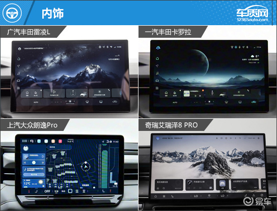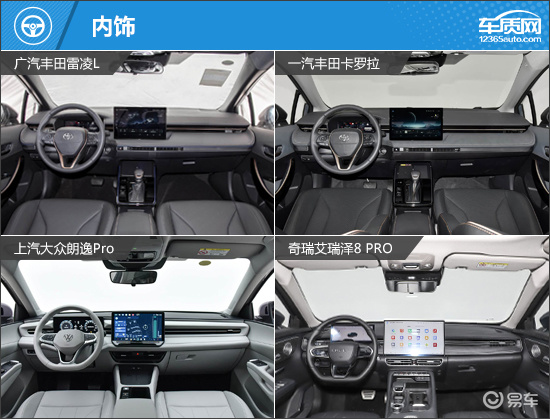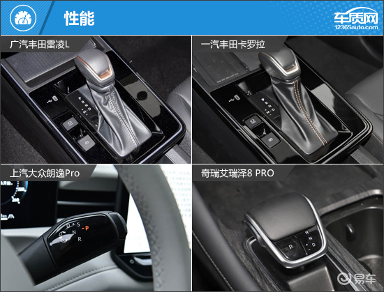 内饰方面,雷凌L和卡罗拉采用相同的设计和布局,简化了物理按键数量,使其看上去十分简洁。朗逸Pro则与时下新能源车风格相似,旋转式电子怀挡的加入,有效释放了中控台的空间,强化了储物能力。艾瑞泽8 PRO则保留了部分实体按键,加上金属材质的扬声器面板,很显高级。