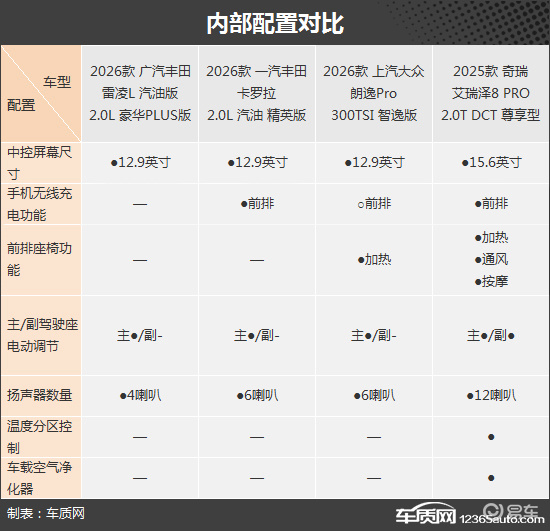 内部配置方面,朗逸Pro和艾瑞泽8 PRO均为前排乘客提供了座椅加热功能,后者还支持前排座椅通风、按摩和副驾驶座椅电动调节功能,大幅提升了舒适性。同时,手机无线充电功能卡罗拉和艾瑞泽8 PRO为标配,而朗逸Pro则需要选装。此外,艾瑞泽8 PRO还独享温度分区控制和车载空气净化器等功能,延续了自主品牌车型高配置的一贯传统。
