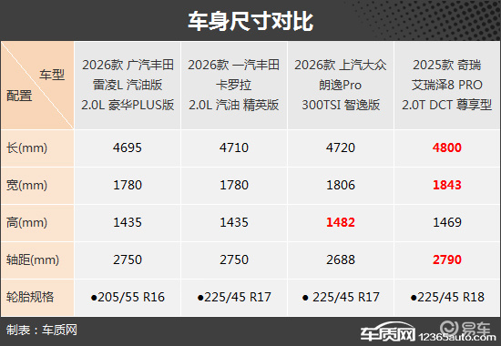 此次推荐的四款车型,广汽丰田雷凌L(下文简称:雷凌L)和一汽丰田卡罗拉(下文简称:卡罗拉)互为姊妹车型,主打皮实耐用和低用车成本;上汽大众朗逸Pro(下文简称:朗逸Pro)作为德系代表,行驶质感更佳。奇瑞艾瑞泽8 PRO(下文简称:艾瑞泽8 PRO)作为唯一一款自主品牌车型,有着跟另外三款合资车型“掰掰手腕”的实力。此次挑选的四款车型价格相近,能够更直观地看出哪家产品实力更强。