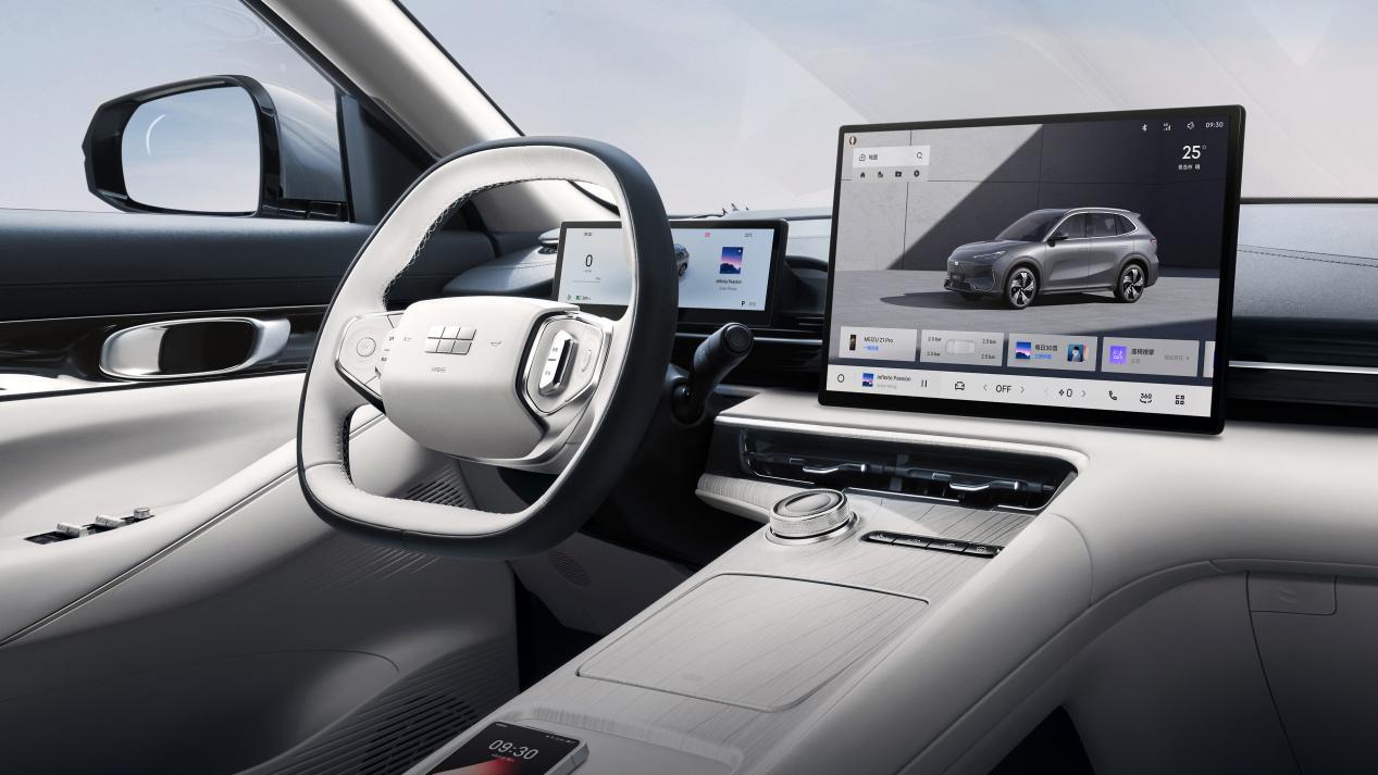 车机搭载自研龍鹰一号芯片,15.4英寸中控屏比零跑B10略大,但手机互联仅支持 Flyme Link 和 CarLife,华为用户互联体验打折。