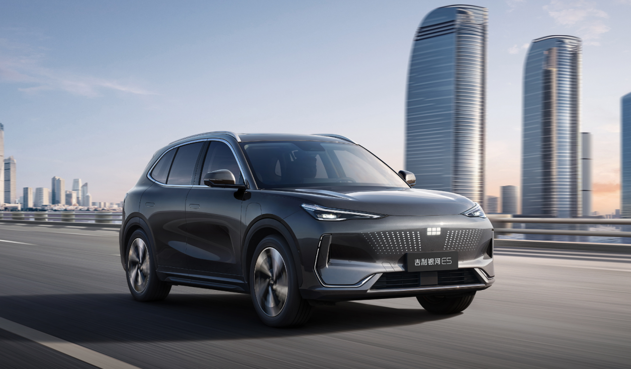 吉利银河E5采用前置前驱布局,电机参数与零跑B10一致(160kW/218 匹),但扭矩达 320N・m,起步推背感更明显,悬挂调校偏舒适,市区平坦路面可以过滤大部分细碎震动,但速度上来之后过连弯侧倾明显。