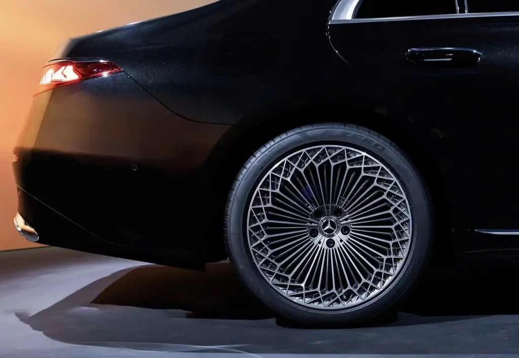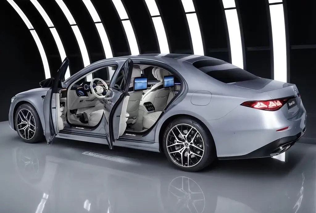 灯组设计更是突破性创新,前大灯首次采用“双星徽”造型,灯腔内部的三叉星徽元素精致醒目;尾灯两侧各镶嵌3枚镀铬边框星徽,与前大灯形成前后呼应的设计语言。当驾驶者靠近车辆时,灯组会即刻闪耀致意,配合侧裙投射于地面的“Mercedes-Benz”迎宾光毯,每一次上车都成为一场充满仪式感的尊享体验。