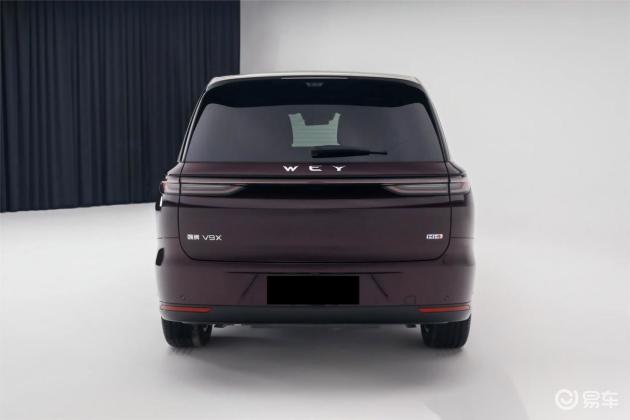 车尾部分,魏牌V9X配备了宽大的后挡风玻璃和小雨刷,尾灯两端内扣包围中间的小蓝灯,显得十分醒目。尾门和后包围设计简约,线条和装饰较为简洁。