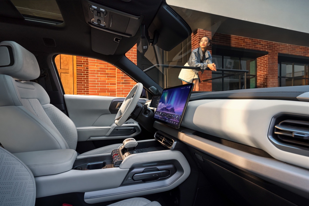 日常家用和户外出行的细节也没落下,后排座椅放倒后可拓展出1米8的平躺空间,露营出行直接解锁休憩自由;全景天幕采用双层夹角玻璃,兼具抗冲击安全性能与99%紫外线隔绝效果,防晒隔热的同时还能保证座舱通透感。