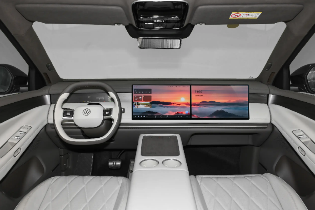 所以ID.ERA 9X这台车,无论是外观内饰设计风格,还是动力、配置,都非常的中国化。比如它采用了分体大灯、贯穿灯带、发光Logo等设计,然后整个车看起来方方正正,非常的有体量感。反正也是除了标,哪里看着都不像大众。
