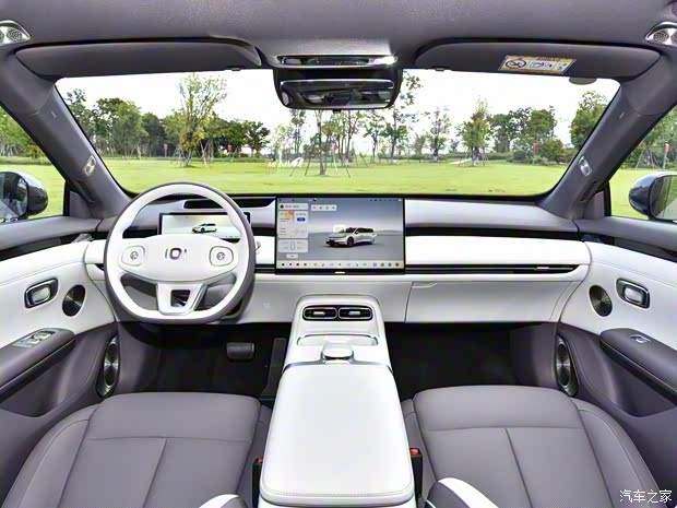 内饰方面,同样是极简设计风格,双色的内饰配色设计,有珠玉白、格调灰、云梦紫可选,256色氛围灯,车内拥有大面积的软质包裹,包含亲肤NAPPA纹理。新车还配备抬头显示系统,和拥有更薄边框的车机屏,中控台下部提供双50W无线快充。全车提供20扬NEVO Sound天枢源声音响系统,包含两个头枕音响。